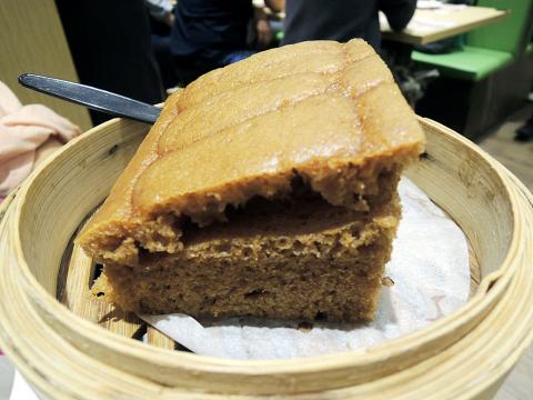 The other “kings” are the pan-fried turnip cake (NT$98), steamed egg cake (NT$98) and vermicelli spring rolls with pig’s liver (NT$128). The turnip cakes (dubbed “carrot cake” on the menu) are slightly softer than ordinary turnip cakes, and the egg cake has an appealing brown sugar aroma that is not too sweet. The vermicelli rolls with pig’s liver were a nice change from the pork or shrimp varieties commonly found in Taiwan. The silky smooth rolls arrived drenched in an appealing combination of soy sauce, green onions and ginger.