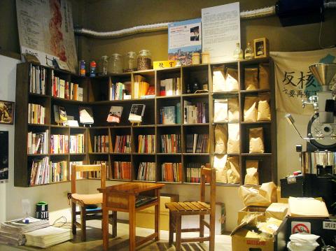 While Backstage could be described as a bookish coffee shop, Buffalo Books, Co (水牛文化事業) is more of a bookstore that’s trying to make lofty ideas more relatable to the general public — while selling coffee on the side. The Taipei branch, which opened in September 2012, is a 15-minute walk from Backstage on Ruian Street (瑞安街), and is furnished with comfy swivel chairs and communal study tables. A connecting door opens to the organic food store and restaurant next door and another door at the back of Buffalo Books leads to a massage area complete with various massage oils.