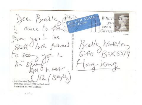 In the years that followed our Bangkok meeting I received several letters and postcards from Bayley, both before and after Iris’s death in February 1999. Here are some extracts.