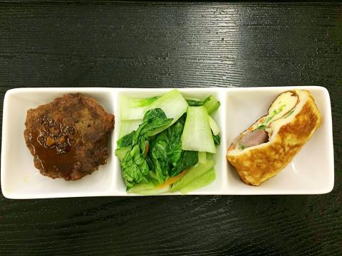 The set meals come with a small side of stir-fry Chinese cabbage, warm egg rolls and chewy veggie patties — all of which complements well with rice or noodles. Drink-wise, the papaya soya milk (NT$70) is a must-try for customers who love fresh fruits and dairy. It’s cool, soothing and helps to wash down the meal.
