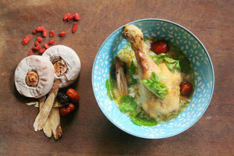 Duck and orange, pork and apple, are great classics. Wet rice with persimmon chicken soup, a traditional though not widely seen combination, proves that persimmon and chicken is another culinary match made in heaven. As the chicken is crucial to giving the soup its flavor, I strongly recommend using a good local chicken from a traditional market. The dates, wolfberry (枸杞) and astragalus (黃耆) are best obtained from a Chinese medicine shop where they will be happy to supply you with the small quantities required.