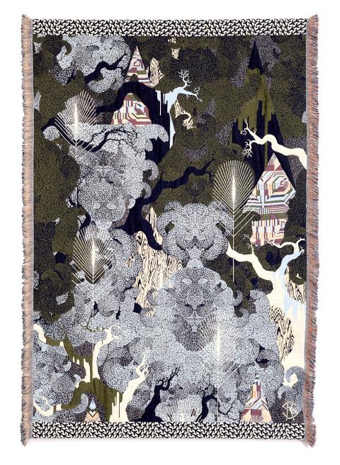 Visual illusions aside, the Finnish artist’s tapestries with their peculiar animals, plants and landscapes, conjure up a feeling of the supernatural. Saksi attributes this magical ambiance to his childhood memories of skiing on the frozen sea from islet to islet and watching the northern lights.