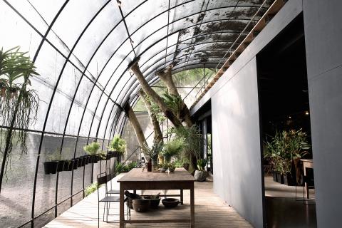 Indeed, there is probably no other place in Taipei better suited to introduce Saksi’s art. Designed to explore ways to strike a balance between urban living and nature, it’s built around a woodland glade. The use of agricultural shade nets as a primary building material effectively blurs the boundary between indoor and outdoor, the living space and nature.