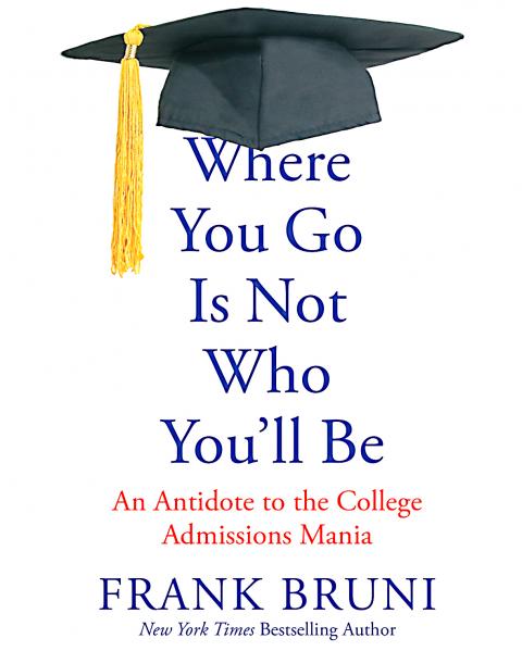Getting into a top college, even for the most accomplished high school students, has become a mad scramble. But in his sensible and sensitive book, Where You Go Is Not Who You’ll Be, Frank Bruni, a columnist for The New York Times, wants to help young people understand the urgent truth of his title. “Where we go to college will have infinitely less bearing on our fulfillment in life than so much else: the wisdom with which we choose our romantic partners; our interactions with the communities that we inhabit; our generosity toward the families we inherit and the families that we make.” That’s something we all know in retrospect but that’s hard to know in prospect for anyone caught in what Bruni calls the “college admissions mania.”