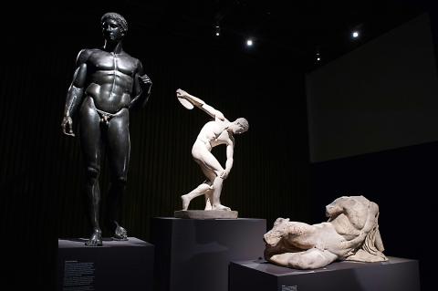 The exhibition opens with the striking view of a nude goddess Aphrodite from behind. When visitors walk around the statue, they are met with her guarded, threatening gaze.