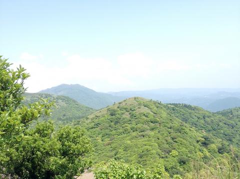 We re-entered dense forest; the coolness afforded by the thick canopy of trees a welcome respite from the scorching sun. Before long, the trail turned off to the left; another steep climb over rocks and tree roots, and we were on top of peak number four, Datun south peak (大屯南峰) with panoramic views of the nearby mountains and the main peak ahead. Dipping back down into forest, we made for Datun Mountain’s main peak (大屯主峰); a punishing climb up a seemingly unending flight of deep stone steps in full sun. Finally we conquered the fifth summit of the day. At 1077m, the main peak affords commanding views of Yangmingshan in the foreground with Taipei city stretching out into the distance. The route then follows the mountain road as it winds its way down to the Erziping Visitor Center (二子坪遊客服務站).