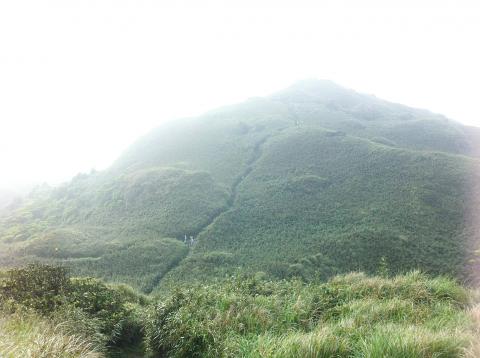 As we climbed further towards Qixing Mountain’s main peak (七星山主峰) the scenery morphed from barren rock and silver grass into flat-topped pine trees, then changed again into a combination of dense dark green grass and arrow bamboo, hugging the mountain top like a snug blanket. Standing on top of the main peak, I could clearly trace our route, the paths scoring a distinct wavy line through the thick undergrowth. The gentle, rolling scenery was my favorite of the whole trip.