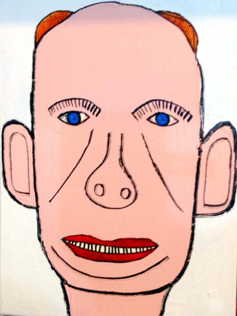 His subjects are often people he knows, and are often set in places he’s been, but everything has been reconstructed through his eyes. The pieces are mostly named after people, places and events. He has a book of paintings that chronicle a road trip from Sydney to Perth. There are whimsical elements, though — the way a subjects’ legs curve, people depicted on garments people are wearing and the existence of a 1,000,000,000,000-channel future news.
