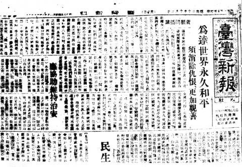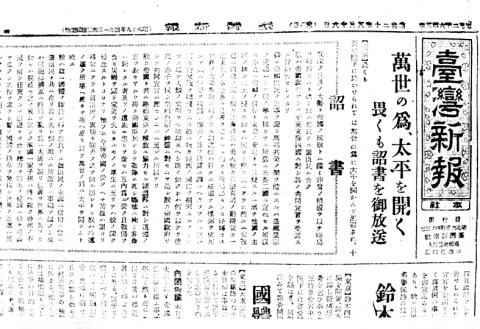 Taiwan’s only newspaper at that time, the Japanese-language Taiwan Shin Pao (台灣新報) published its first Chinese article on Oct. 2. By Oct. 10, Chinese had become the paper’s main language.