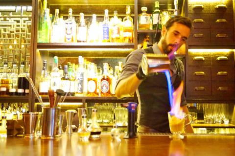 R&D, which stands for “Research & Development,” is the brainchild of three entrepreneurs united by their nerdy fascination with liquors — Spencer Huang (黃勝斌), who is half American and half Taiwanese, Yann Gueroult from France and Dale Kung (孔柏仁) from Taiwan. Kung was Huang’s language professor at National Taiwan University. Hungover from previous nights’ shenanigans, Huang would design his one-on-one classes with Kung in such a way that they were talking about alcohol each class. He eventually convinced Kung to leave his teaching position and join him and his friend Gueroult, who was a chef back in France, to open R&D in January this year.
