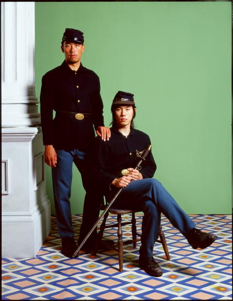 NSEW (2007) is a series of photographs that examine a part of American civil war history that is largely excluded from official texts and public consciousness. The large photographs depict Asian men posing as soldiers fighting during the war in an act that restores them to the historical record. The costumes were rented from the oldest Hollywood costume supplier, Western Costume, whose collection of civil war uniforms were used in American director DW Griffith’s 1915 infamously racist film, Birth of a Nation.
