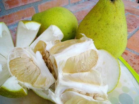 The pomelo’s scientific name is Citrus maxima, a reference to its very substantial size, and in my childhood was often referred to as shaddock, though this appellation is now rarely heard. It has many similarities to the grapefruit, which is in fact a hybrid of the pomelo and the mandarin. It is indigenous to Southeast Asia, and Taiwan prides itself on the outstanding quality of its pomelos, which are recognized throughout the region. The most highly prized fruit come from Madou (麻豆) in Tainan, Hegang (鶴崗) in Hualien County and Douliou (斗六) in Yunlin. Crops of top quality pomelo from these locations are often sold out weeks before the Mid-Autumn Festival, as connoisseurs around the country take to the Internet to order directly from established producers.