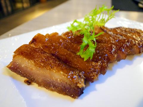 A visit to Chang Ju would not be complete without tasting its signature crispy barbecued pork (脆皮叉燒, NT$420). The reason behind the hype is the restaurant’s chef, Yang Hua-chih (楊華志). A younger brother of the inventor of the famous dish, Yang is said to have mastered the recipe, which involves repeatedly applying cane sugar to the thin layer of fat and roasting the pork until its skin becomes caramelized and crisp. The result is a delightful combination of textures, accented by a sweet and savory flavor. Some claim Chang Ju’s crisp pork is as good as that served at the Sheraton Hotel’s (喜來登飯店) The Dragon (辰園), where the delicacy was first introduced.