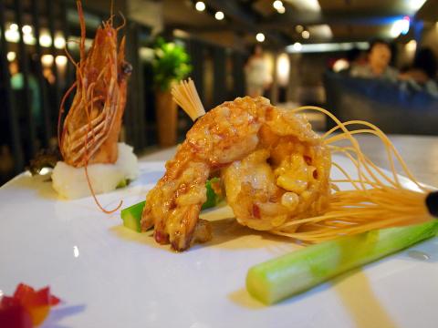 Apart from fancy seafood banquet dishes such as Cantonese superior abalone (蠔皇一品原隻鮑, NT$1,180 per person), the restaurant sports a variety of finely prepared oceanic delights (note to conservationists: shark fin soup is sold here at premium prices). The shrimp salad with onions (卡夫醬拌明蝦球, NT$280 per person), for example, earned praised for its succulent crustacean and creamy sauce made from salted egg yolk and sea urchin.