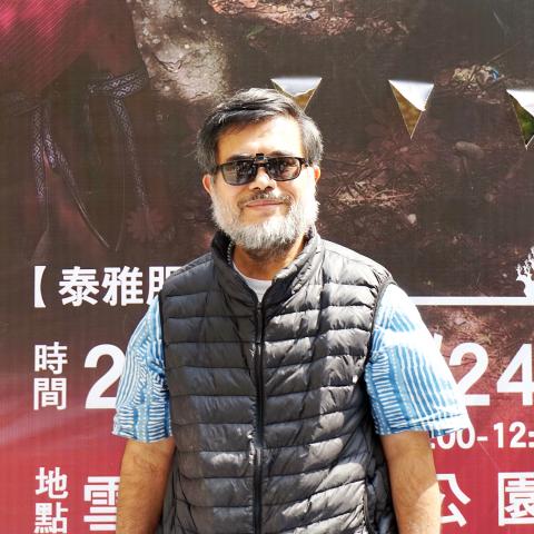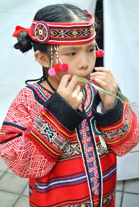 A designer hollers “lunch time” as models — male, female, toddlers and middle-aged — scamper to folding tables, grab a lunch box and plop themselves on the grass. A group of people next to the makeshift catwalk are trying to rearrange a row of bamboo plants brought down from the mountains of Miaoli County. Next to them, a few male models are hanging pieces of Styrofoam cut to resemble clouds over a sign for the Suraw Atayal Fashion Show (森林之心色舞繞泰雅服裝秀), which takes place on Saturday in the county’s Shei-Pa National Park (雪霸國家公園).