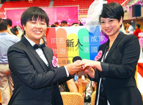 Of the nation’s six municipalities, Taipei, Taoyuan, Taichung and Kaohsiung have promised to include same-sex couples in their public mass weddings, while New Taipei Mayor Eric Chu (朱立倫) and Tainan Mayor William Lai (賴清德) refused to adopt the measure, claiming that it is inappropriate to do so before amendments to the Civil Code (民法) are completed.
