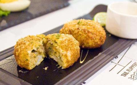For appetizers, we ordered the deviled eggs (NT$280) and the crab cakes (NT$380 for two). The crab cakes were excellent, as each bite contained copious amounts of juicy crab meat with little filler. The abundance of meat, though, caused the bottom of the crab cake to become slightly soggy — but I’m not complaining. They were flavorful yet not greasy, and I didn’t need the lemon or tartar sauce that it was served with.