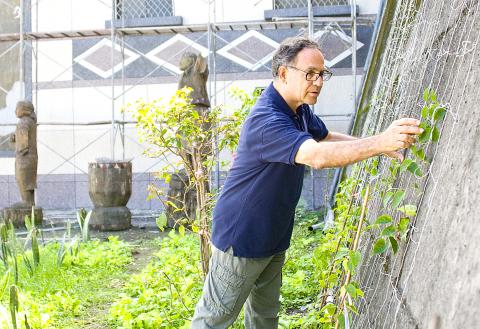 Father Barry Martinson says there is an element of suffering to making art. He liked painting and writing when he was a child, but ever since he arrived in Chingchuan Village (清泉), an Aboriginal community nestled in the picturesque mountains of eastern Hsinchu, it has become more of a “mission” to beautify his surroundings, whether it be murals depicting Aboriginal life in his church or mosaics on the walls of a basketball court.