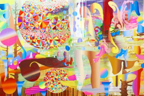 Come After Magic is an enticing psychedelic exhibition by Japanese artists Satoshi Ohno and Takuro Kuwata at Taipei’s Aura Gallery. Ohno, who lives by the foot of Mount Fuji, has no trouble finding inspiration for his colorful, abstract paintings which evoke a childlike curiosity with nature that’s refreshing as it is mesmerizing. He sees beauty in the geometric properties in flowers and plants, reinterpreting it as kaleidoscopes of colors. Meanwhile, Kuwata’s work achieves much of the same effect, albeit through porcelain. He uses the traditional glaze technique of kairagi (cracked glaze from firing) and ishihaze (literally stone explosion) to produce cracked and contorted pop art-style tea cups and kettles. The ceramics allude to traditional Japanese tea ceremonies but with a modern, somewhat hipster-come-flippant flair.