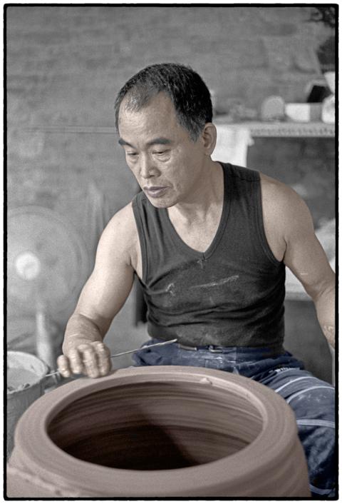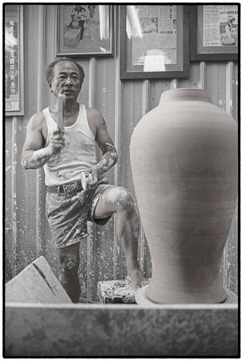 Kick-wheel potter Chan Kuo-hsiang (詹國祥) tells a story of how late president Chiang Ching-kuo (蔣經國) was puzzled during a visit to the old pottery town of Yingge (鶯歌鎮). BMWs and Mercedes were parked along streets lined with dilapidated buildings — conspicuous wealth amid ramshackle abodes.