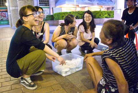 Earlier, before the volunteers departed their home base in Wanhua District’s (萬華) Nanjichang Residences (南機場公寓) in Taipei, one asked why they would need so many people to hand out what does not seem to be a large amount of food.