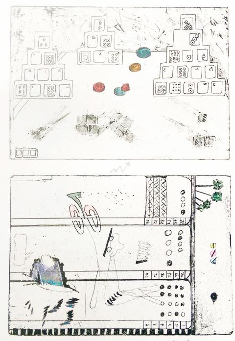 Printmaking shop MBMore is currently featuring the works of three young printmaking artists, Lee Jhih-Yun (李芷筠), Aaron Horse (林恩崙) and Wu Pei-hsuan (吳佩璇). No One Here explores the notion of fleetingness. Lee’s messy depiction of keyboard buttons and charts represent a flow of thought and how the human mind does not think in logical ways, while Horse conveys this through etchings of dismembered thumbs. Wu’s lithographic prints appear to be merely black sheets of paper, but upon closer inspection, eerie silhouettes and shadows are revealed, which seem to suggest the adage that nothing is what it seems.