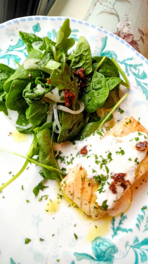 Slow roasted salmon with lemon yogurt