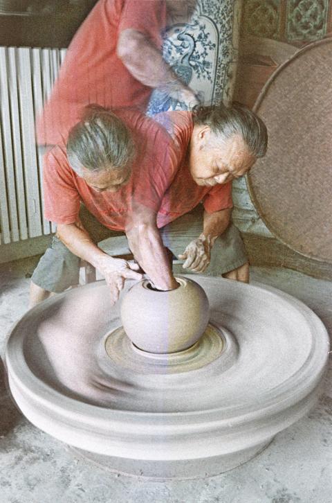 Wu’s daughter-in-law Lai Hsiu-tao (賴秀桃) — a potter in her own right — says that in the past, almost every household in Cizao was involved in producing pottery.
