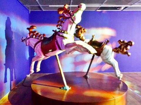 Ventura, does, however, loop back to this later in the exhibition, though the second carousel — which consists of two horses bobbing up and down — appears more approachable and conjures up memories of a lost, idyllic childhood.