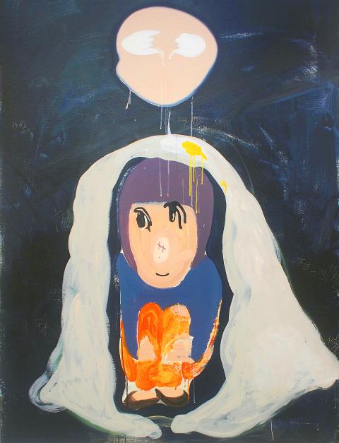 On display at IT Park Gallery are Hsiao Chu-fang’s (蕭筑方) playful and harried sketches of people going about their daily lives. Wink Wink (眨眨) explores the speed of contemporary life in the city — particularly how everything seems to move by in the blink of an eye. Expressions are slapped onto faces with seemingly little thought and characters are painted with what seems to be a mix of child-like idealism and a matter-of-fact kind of indifference. Although her sketches seem tongue-in-cheek, even a little skittish, they are still valuable observations, or rather, useful fragments which the viewer can piece together to form a greater picture.