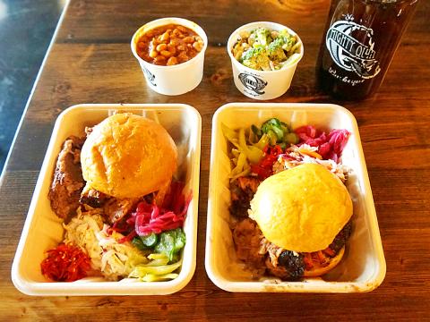 Choose your meat, sides and drinks — including locally brewed craft beer (NT$200 to NT$280) and a refreshing homemade ice tea (NT$60) — at the counter. All meats come with a bun, coleslaw and pickled vegetables. The meat is cooked Texan-style, charred and almost falling off the bone, which creates a distinct smoky flavor. Each table has a gigantic bottle of barbecue sauce — be sure to add copious amounts to your food.