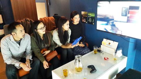 Co-owner Todd Chen (陳聿銘) says that they purposely did not install computers to steer clear of the Internet cafe atmosphere, as they want people to socialize as they would in a regular bar. Huang says the drunken challenges help facilitate interaction and aren’t meant to be taken seriously like a real tournament.