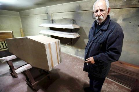 “The last people who bought a coffin from me a year ago got it for their mum, who was living here,” Homsi told AFP, sitting in the sole chair in his dusty workshop.