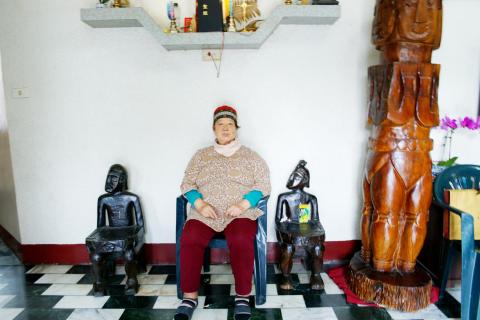 Soon after I arrive at the Zingrur family home in Taiwu Township, several of the royal family and other members of the Kaviyangan community take their seats and chat animatedly around a large table stacked high with sweets, cookies and crackers.