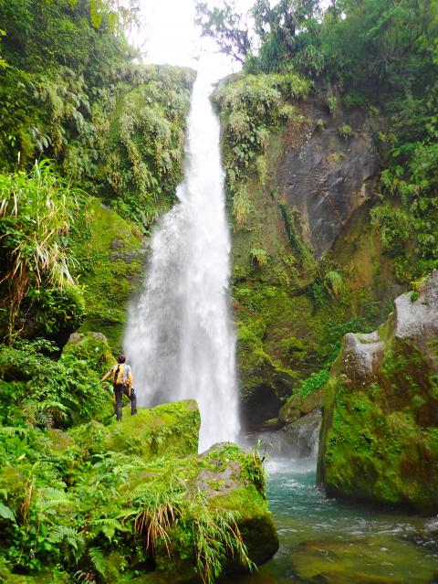 Wade or step across the half-submerged rocks in the stream (an old hump-backed bridge that once spanned the stream here is long gone) and hack a way through the jungle on the far side to reach the old “boat” restaurant nearby, right below Guanyin Waterfall (觀音瀑布). This tall and graceful curtain of water, 25 meters high, lies on a tributary of the main stream. There’s a great view of the fall from the “deck” of the abandoned cafe, reached by an outside staircase covered in vines.