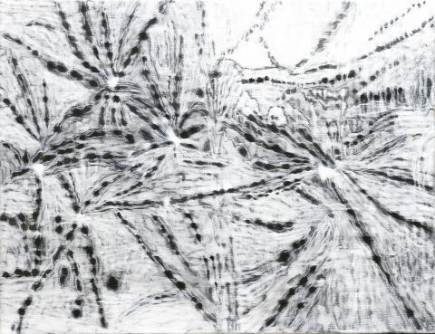 Chen Nien-tzu’s (陳念慈) delicate ink painting’s on paper are among the highlights of the group show, Insight into the Nature of Mind — The New Trace of Contemporary ink Art (觀心 — 當代水墨的新足跡). Chen’s seemingly realistic subjects are depicted by omission. In Moonlight, for example, the moon is not depicted directly, but through the reflection that plays with the perception of existence. Winnie Mak’s (麥翠影) traditional ink sketches are hypnotic meditations on people.