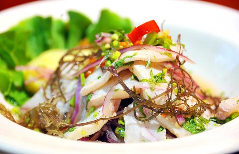 The drinks menu is Peruvian as can be, including chicha morada, a sweet purple corn drink (NT$120); lemon juice with egg white (NT$120); Peruvian coffee (NT$120), pisco sour, the national cocktail (NT$200) and the country’s distinctive bright yellow-colored Inca Kola (NT$120). There’s also a chia seed (a “superfood” originating from Peru) lemonade (NT$140).