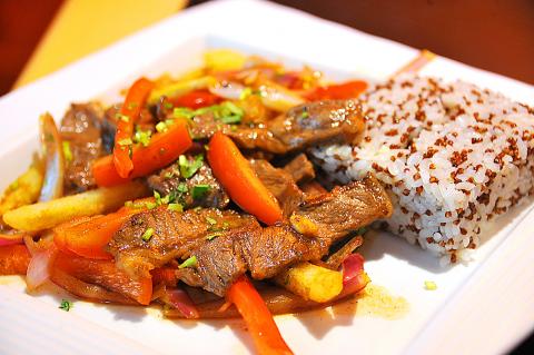 My friend ordered the lomo saltado (NT$300), stir-fried beef in a soy-and-vinegar based sauce with onions, tomatoes, bell peppers and french fries. The thinly-sliced beef is tender and juicy and the tomatoes and bell peppers provide the crunch and tang. But the most satisfying element were the french fries. Despite soaking in the sauce, the fries retained their crispiness, creating a sensation much like the American chili cheese version, but less thick. It came with a mixture of rice and quinoa, which has a crunchier texture than just plain rice.