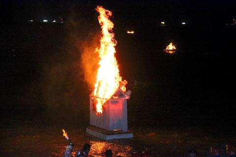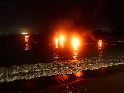 The procession winds down between 9pm and 10pm, and then everyone heads over to Wanghaisiang Bay (望海巷) at Badouzi (八斗子), nine kilometers east of Keelung Railway Station, to see the highlight of the night’s activities: the burning of the water lanterns. Shuttle buses are available from the city center. The burning ceremony starts at around 11pm, but try to arrive well before this, to snag a good spot. Aim for a spot as far to the right as possible, close to the boat ramp, where the lanterns will be set adrift.