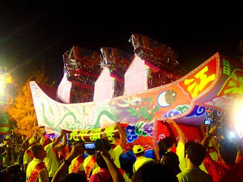 By far the most colorful of Keelung’s Ghost Month events is the Parade and Releasing of the Water Lanterns. Around dusk on the evening of the 11th day of the seventh lunar month — Sept. 4 this year — a procession of colorfully decorated floats parades around the center of Keelung.