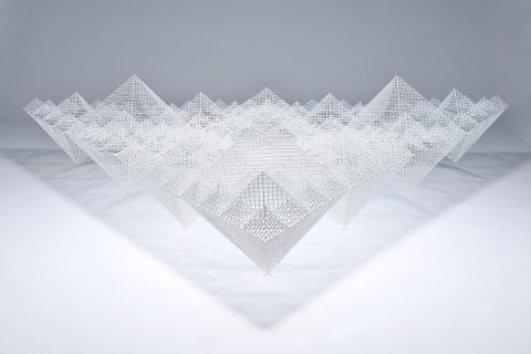 A Gaze into the Illusory Transformation (凝視的幻化) will showcase Chu De-hua’s (曲德華) painted stainless steel mesh sculptures. As opposed to the traditional approach to sculpture, Chu’s signature style of using industrial building materials that merge two-dimensional and three-dimensional planes. The resulting sculptures give off a sense of lightness and an illusion that they are floating.