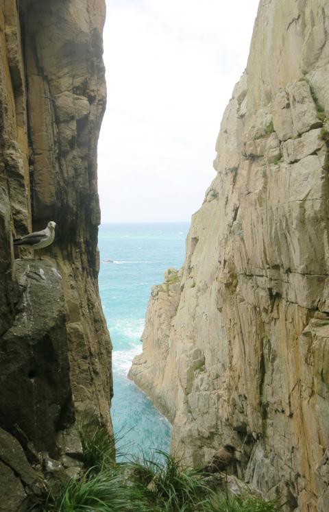 The western half of Dongyin has some impressive sights, but it’s the easternmost peninsula of the island (just a short zip by hire scooter from Jhongliu village) where the most breathtaking coastal scenery is found. First, below a small military compound, is the incredible cleft, Thread of Sky. A soldier may or may not walk up with pen and paper as you draw up at the parking area. Sign in with your ID if he does, and follow the steps down the grassy hillside and into the crevice. Thread of Sky isn’t especially big, but it’s extremely narrow, as the name suggests, and the short walk down there is stunning.
