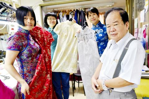 Lin Chin-te (林錦德), 74, is among a handful of craftsmen in Taiwan who still specialize in handmaking the high-collar, figure-hugging garment which was once part of many women’s daily wardrobes.