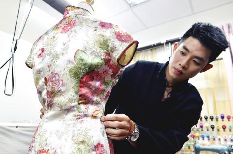 Mass-produced, cheaper clothes eventually dented its appeal and some designers say recent growing anti-China sentiment has also put off young people as they associate the dress with that country’s culture. However, Lee Wei-fan (李威樊), 25, says there is still a fanbase. He studied qipao making under an old master for five years after deciding to carve out a niche in a field few of his design peers wanted to go into. Lee opened his own business six months ago and has built a following on social media where he goes under the name “Qipao Hunk” — something he blushes to admit was a publicity stunt.