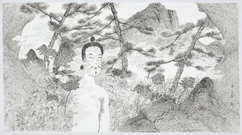 Liao Wen-hao’s (廖文豪) contemporary ink paintings are currently on view at Into the Eye, into the Mind (過眼即擁有). Liao’s ink paintings on paper riff off conventional styles combining landscapes with everyday phrases such as “Bored to Death.” His whimsical flair is a refreshing approach to explore new possibilities of this timeless medium.