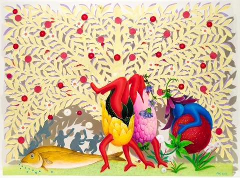 Chang Jui-pin (張瑞頻) is showing her new mixed media works at her solo exhibition The Garden of Earthly Delights (塵世樂園). This showcase of her cutouts and installations marks a breakaway from her other mediums: painting and drawing. While Chang’s work resembles the surreal style of Max Ernst and Henri Matisse, they possess a high degree of originality and are full of imaginary creatures in a land with earthly desires and pleasure.