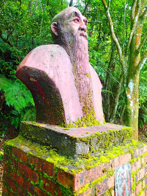 The main part of the park is above the road, past some huge moss-covered boulders that are inscribed with calligraphy by the famed calligrapher, scholar and politician, Yu You-jen (于右任), a major figure in the Tongmenghui (同盟會), a secret society dedicated to the overthrow of the Qing Dynasty in the years leading up to 1911. At the ripe old age of 71, Yu followed the KMT to Taiwan in 1949, and served in the new government, formed the following year. Yu was especially moved by that epic trip across the Pamir Mountains, and wrote in praise of the soldiers’ incredible effort. A bust of the great man, with a long, flowing beard, tops one of the big natural rock formations just inside the entrance to the park. Yu died in 1964, and is buried in an imposing and very elaborate tomb above route 101甲, also known as the Balaka Highway (巴拉卡公路), about a kilometer west of Datun Nature Park (大屯自然公園).