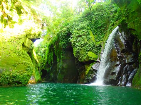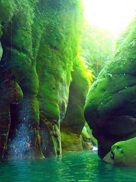 Safer and much easier to visit is the very small but atmospheric Chauyin Cave (潮音洞) on the slopes of Guanyin Mountain (觀音山) across the river from New Taipei City’s Tamsui District (淡水), and the gorge below the lovely Budong Waterfall (不動瀑布), just a short bus ride from the hot springs in Taipei’s Xinbeitou in Beitou District (北投). The Wormhole, however, is in a class of its own.