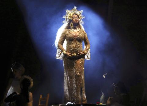 February of last year. Beyonce was expecting her twins. She performed at the Grammys in gold, royal crown and neck collar in place.