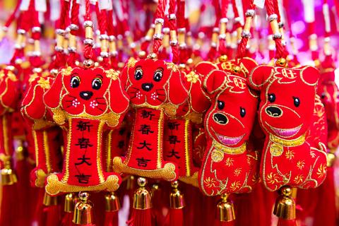 Models of animals from the Chinese zodiac are sold to mark the Lunar New Year, which falls in mid-February this year. The dog is well-regarded in Chinese culture, signifying loyalty and honesty.